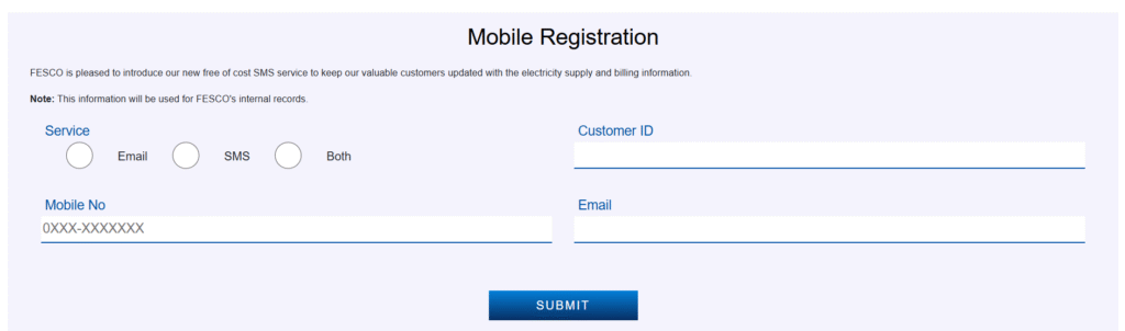 https://www.fesco.com.pk/mobile_registration - Youโll see a simple form with two input boxes.